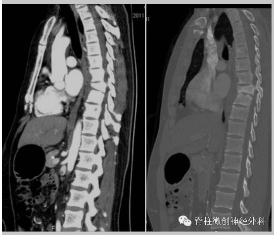 此病例中,患者没有截瘫、胸背部疼痛可耐受、胸背部后凸畸形也不明显。病灶破坏程度选择治疗方案的参考之一,特别是是否手术治疗的重要参考。此次例患者提示手术指征不明显,手术受益相对少,同时手术风险较大,因此建议保守治疗。