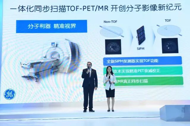 在发布会上,SIGNA PET/MR作为今天的“开场嘉宾”第一个出场。PET/MR凭借业界领先的一体化同步扫描、TOF和ZTE技术,并以影像精准定量有力推动分子靶向成像、影像基因组学的临床应用,促进肿瘤、神经系统、心血管、体检筛查等微小病灶精准诊断,打造了基于个体化治疗的精准医疗“新标杆”。