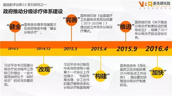 自2014年以来,国家领导人多次在各种场合强调未来医改的重要方向:建立完善分级诊疗体系。国务院各部门相继出台了一系列政策,鼓励各地积极开展分级诊疗工作。