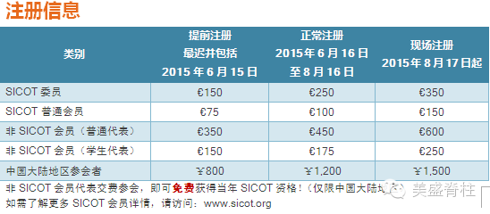 怀揣着无比的欣喜和极大的热情,邀请您参加一年一度由国际矫形与创伤外科学会(SICOT)主办的全球骨科学界顶级盛会:第三十六届SICOT世界骨科大会(SICOT2015)。本届大会将于2015年9月17-19日在广州举行,这是国际矫形与创伤外科学会首次在中国举办年会。我们谨代表国际矫形与创伤外科学会中国委员会和中国SICOT所有成员,真诚地邀请您参加本次盛会。 大会学术委员会将为您提供最高标准的精彩学术安排。大会将围绕当今骨科领域的重要问题进行交流,勾勒骨科学发展的新趋势、新构想和新蓝图。当然,大家也可以就目前骨科学界的热点问题以不同的视点或角度发表自己的观点和立场。我们期待国内外骨科各领域的专家与会并进行深入探讨,以加强国际间学术交流。青年一代医生是全球骨科科学发展的希望,大会同时为来自世界各地的青年医师和学员开设形式多样的教学及指导课程。 关于SICOT SICOT是国际知名的矫形与创伤学术组织,创立于1929年法国巴黎,目前总部位于比利时布鲁塞尔。SICOT专注于在全球范围内推动骨与创伤学科进步,提升患者医疗水平,并致力于骨与创伤学科的临床治疗、科研、教学的交流与培训。目前,SICOT拥有超过110个国家与地区会员,每年都举办全球最高水平的骨科科研、临床学术会议以及相关行业大会,得到全球骨科业界人士的高度赞誉。 大会秘书处 赵 宇 北京协和医院骨科 地址:北京东城区帅府园1号 邮编:100730 邮箱:sicot_china@163.com 大会组委会 戴佳音 先生、唐烨斌 先生 复医会展管理有限公司 电话: +86-21-64453107转804、806 传真: +86-21-64453106 邮箱: secretariat@sicot2015.org |